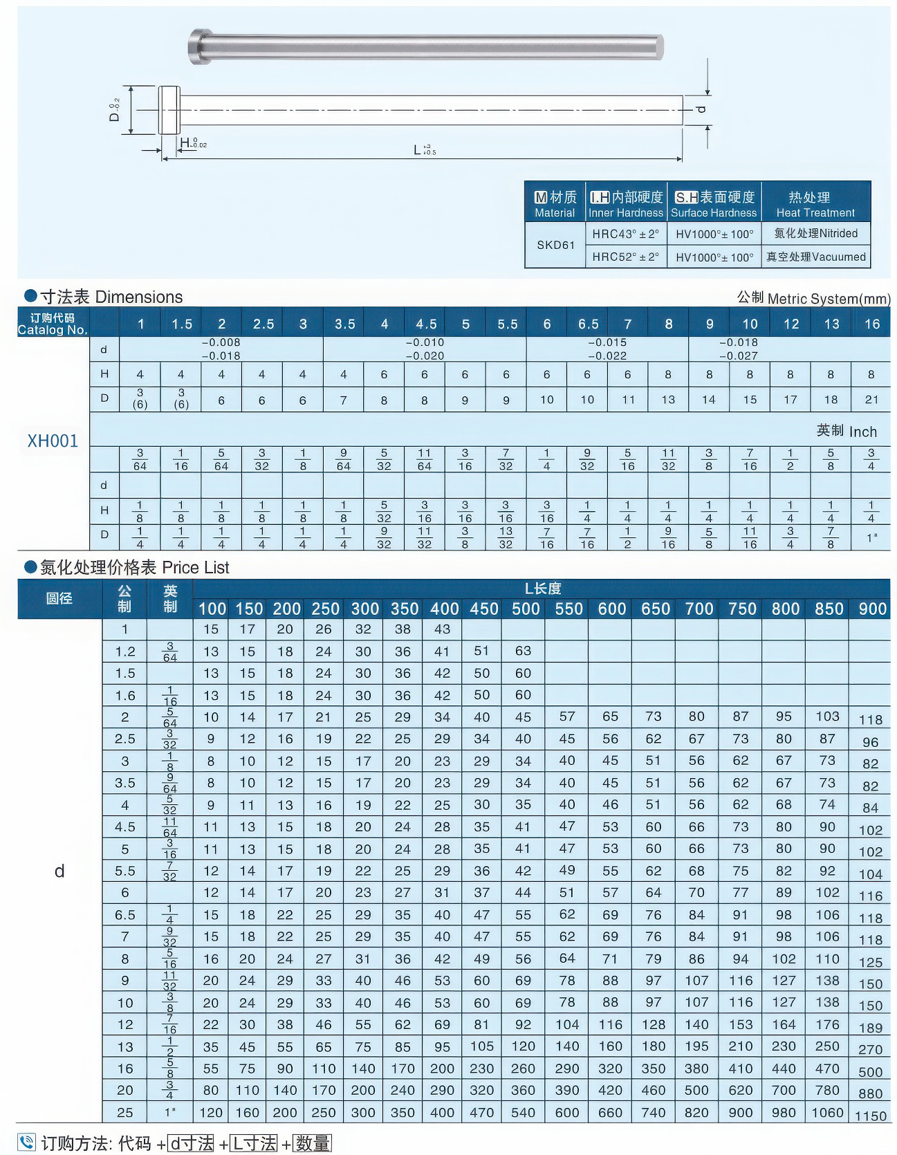 SKD-61 flat pin
